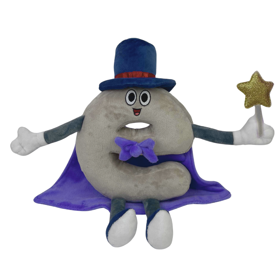 Soft, huggable, and perfect for little hands, this plush companion matches the main character in the popular book, "The Very Talented Silent E".
