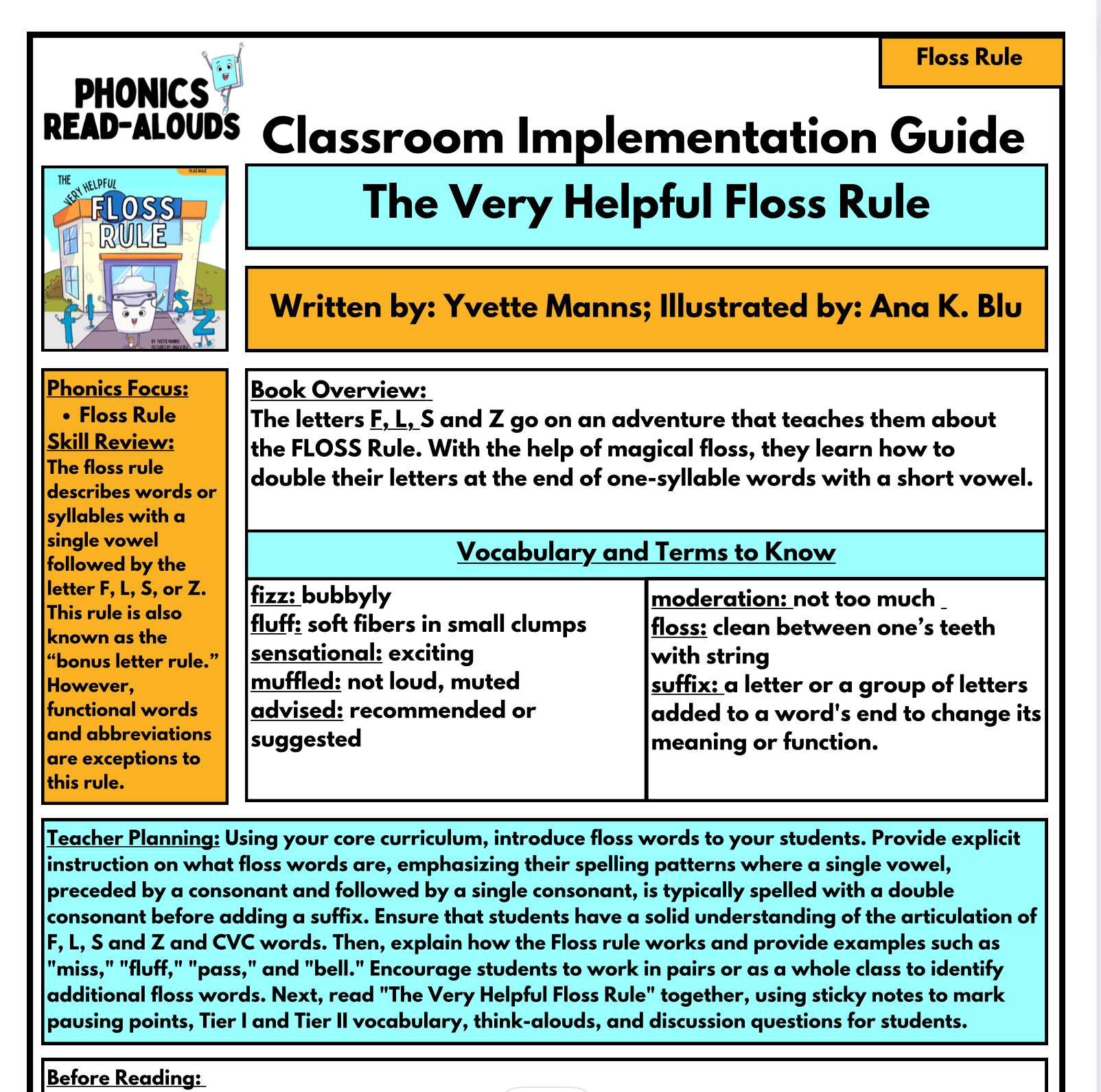 Enhance your read-aloud with the downloadable guide for "The Very Helpful Floss Rule." This guide includes questions, vocabulary, extension activities, and discussion prompts to make reading the book interactive.